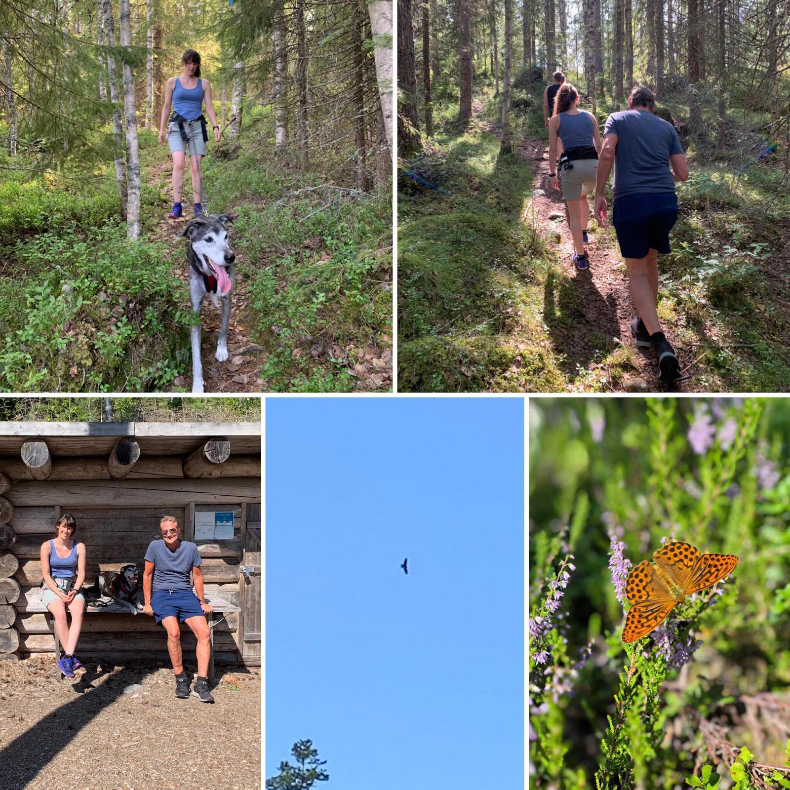 Dagen etter fant vi ut at vi skulle gå en liten.... ja... en liten tur.... :P Vi kjørte inn til Nestreia hvor vi lot Redikk bade før vi skulle gå inn til enden av veien. Vel vi gikk inn til enden, men der var det et skilt som pekte så fint mot Børli.... Ja... Da sto vi der å lurte på hva vi skulle gjøre, og plutselig var vi jammen meg på vei dit også. Det er så utrolig mye hyggeligere å gå i slik skog enn på en grusvei.